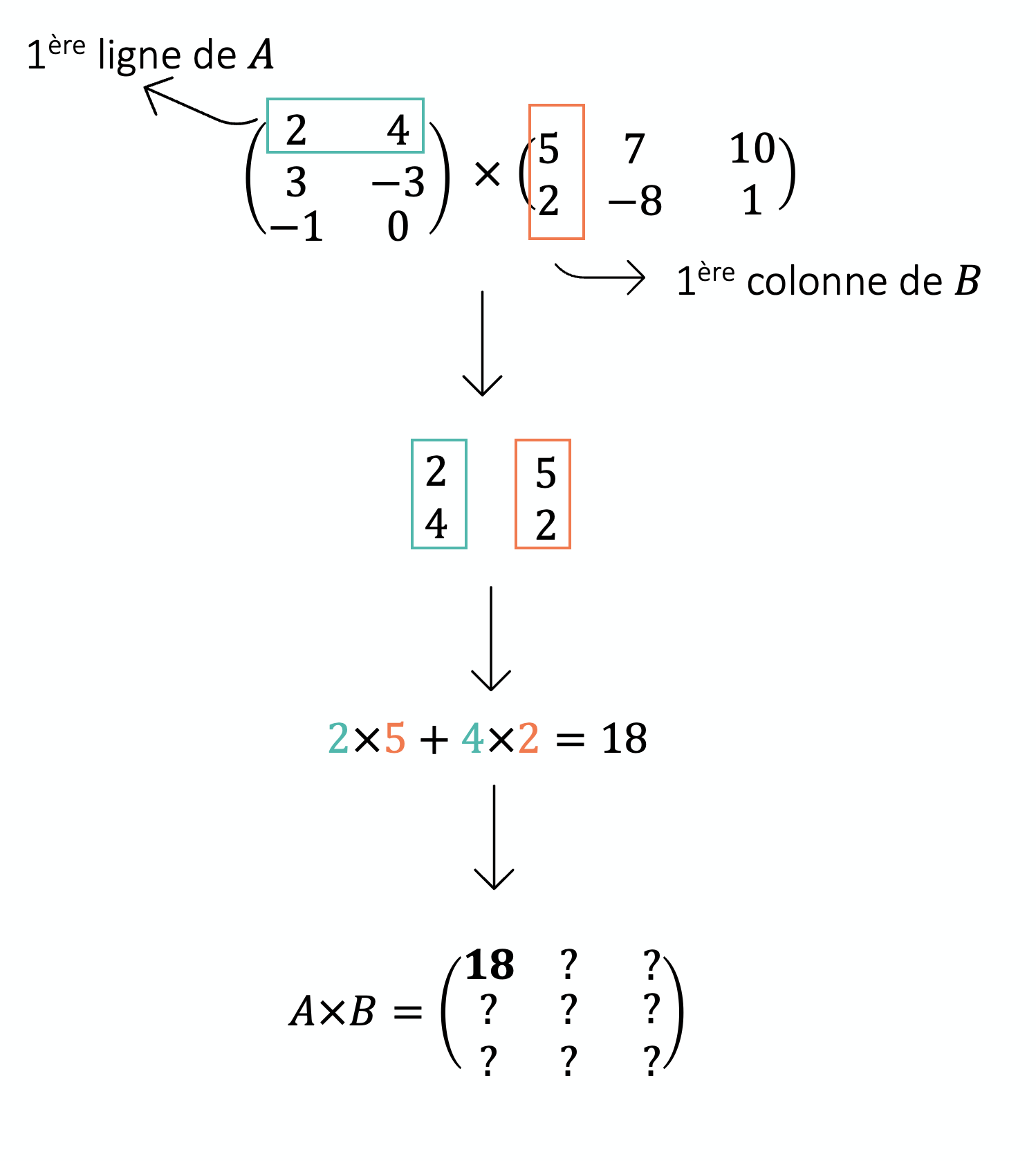 Pour calculer la valeur en 1ère ligne, 1ère colonne du résultat, on prend :
