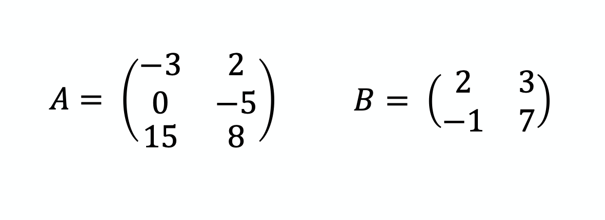 → A a pour taille 3x2 et B a pour taille 2x2